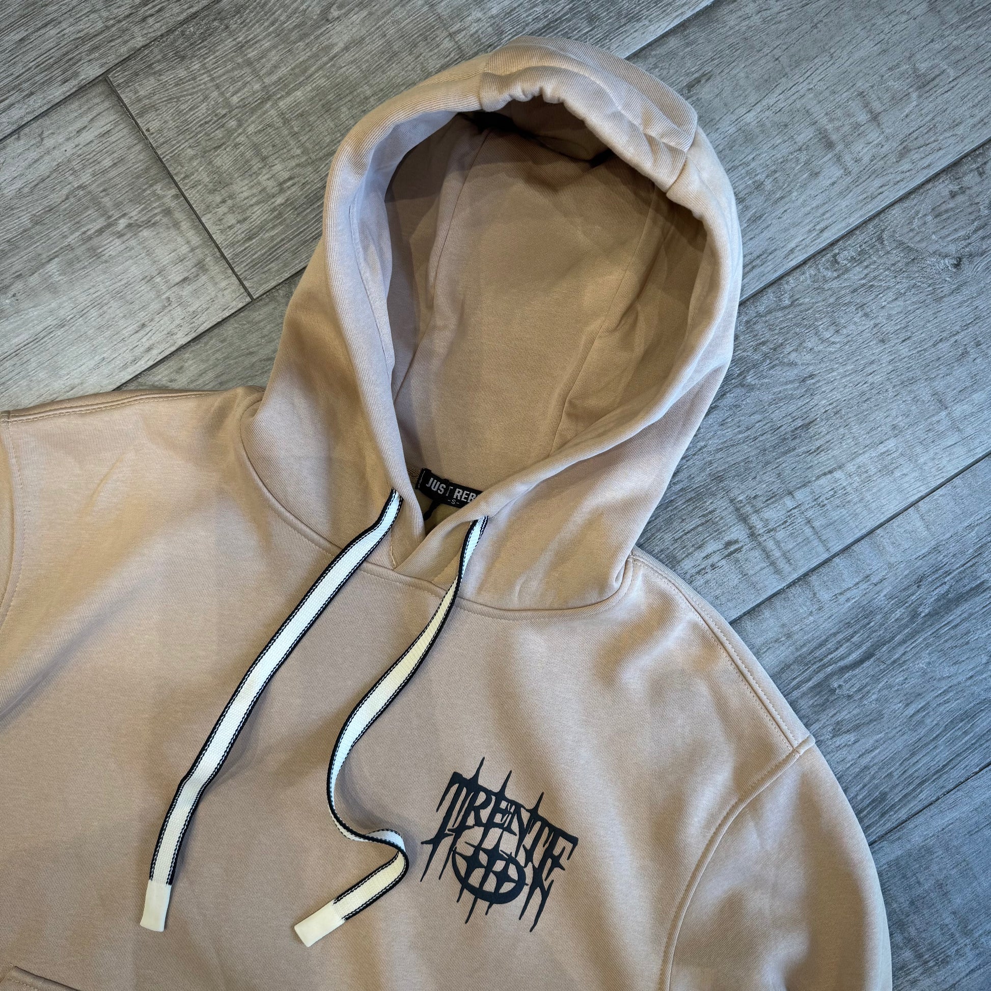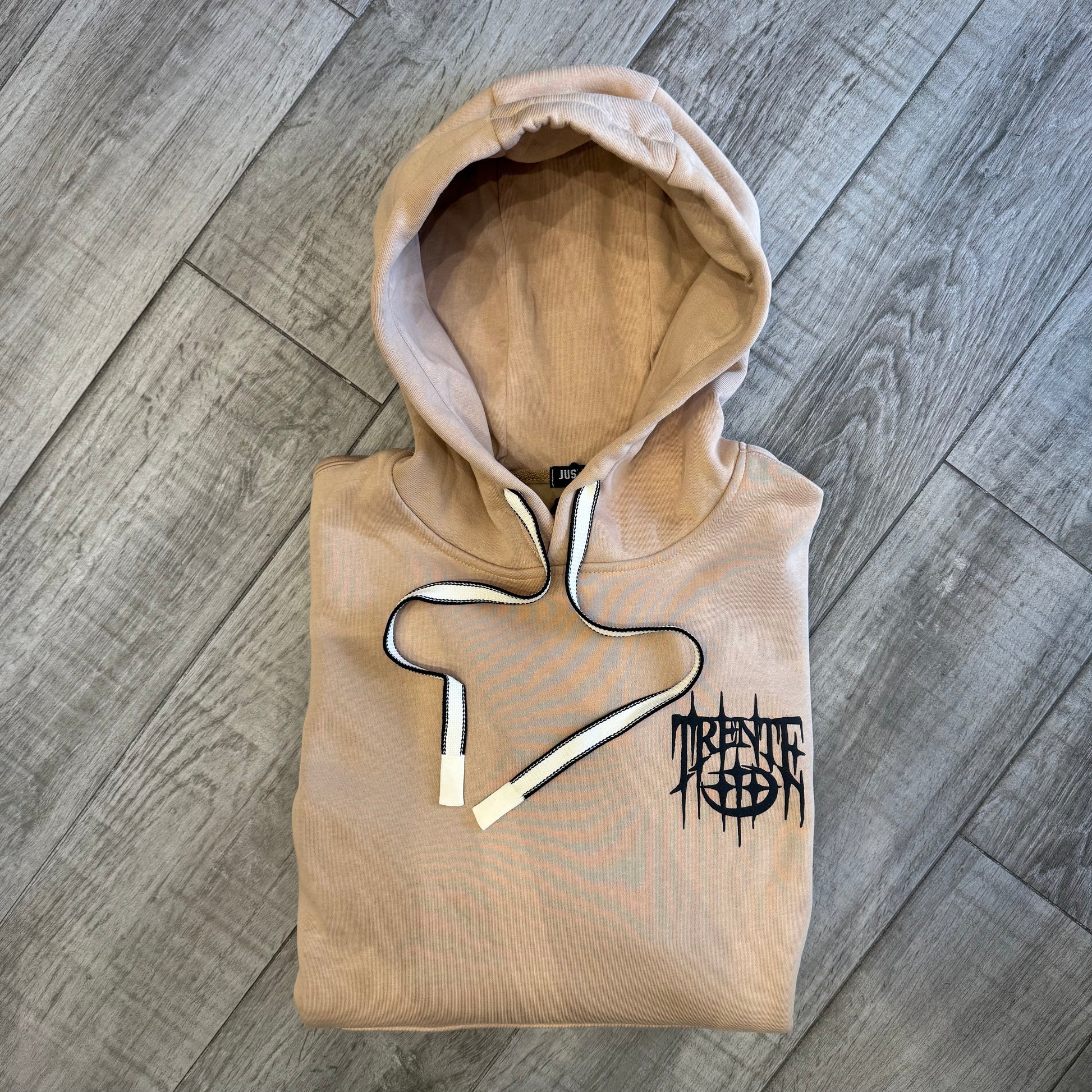 Il colore beige neutro la rende versatile e facile da abbinare, mentre la scritta gommata Trente aggiunge personalità: più grande sul retro e più piccola sul petto per un tocco distintivo e moderno.