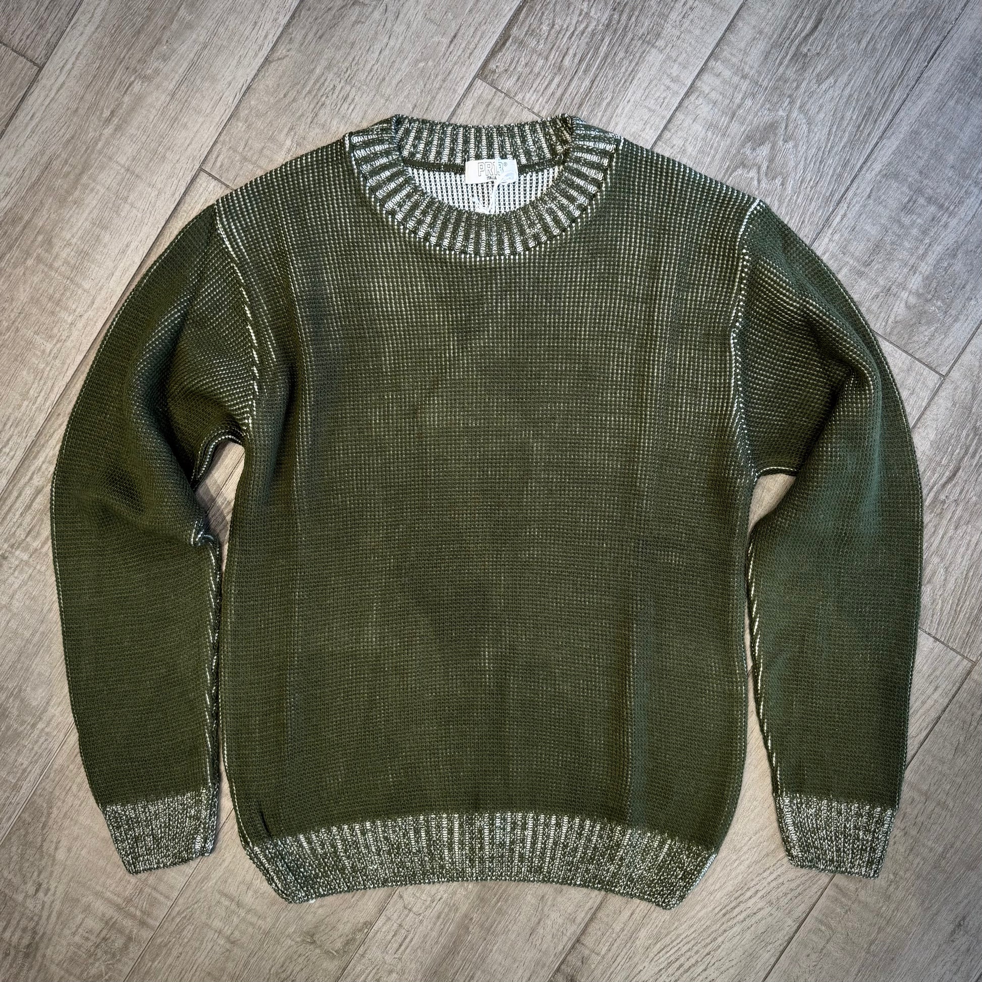 La lavorazione mélange crea un elegante contrasto tra il colore principale del maglione e i fili bianchi intrecciati nella trama.