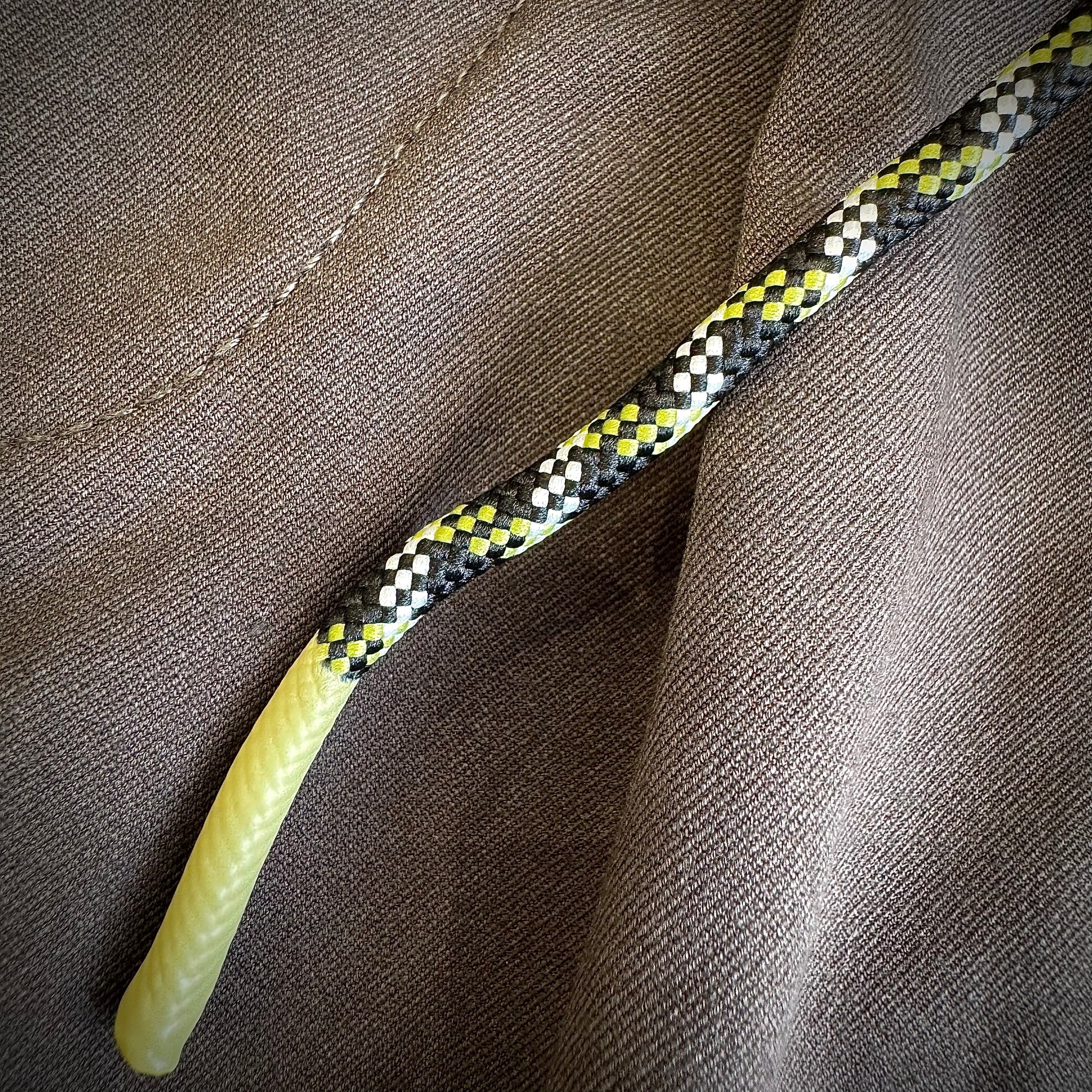 Il design si distingue per una coulisse in tessuto intrecciato a contrasto, arricchita da un cilindro in resina nella parte finale.